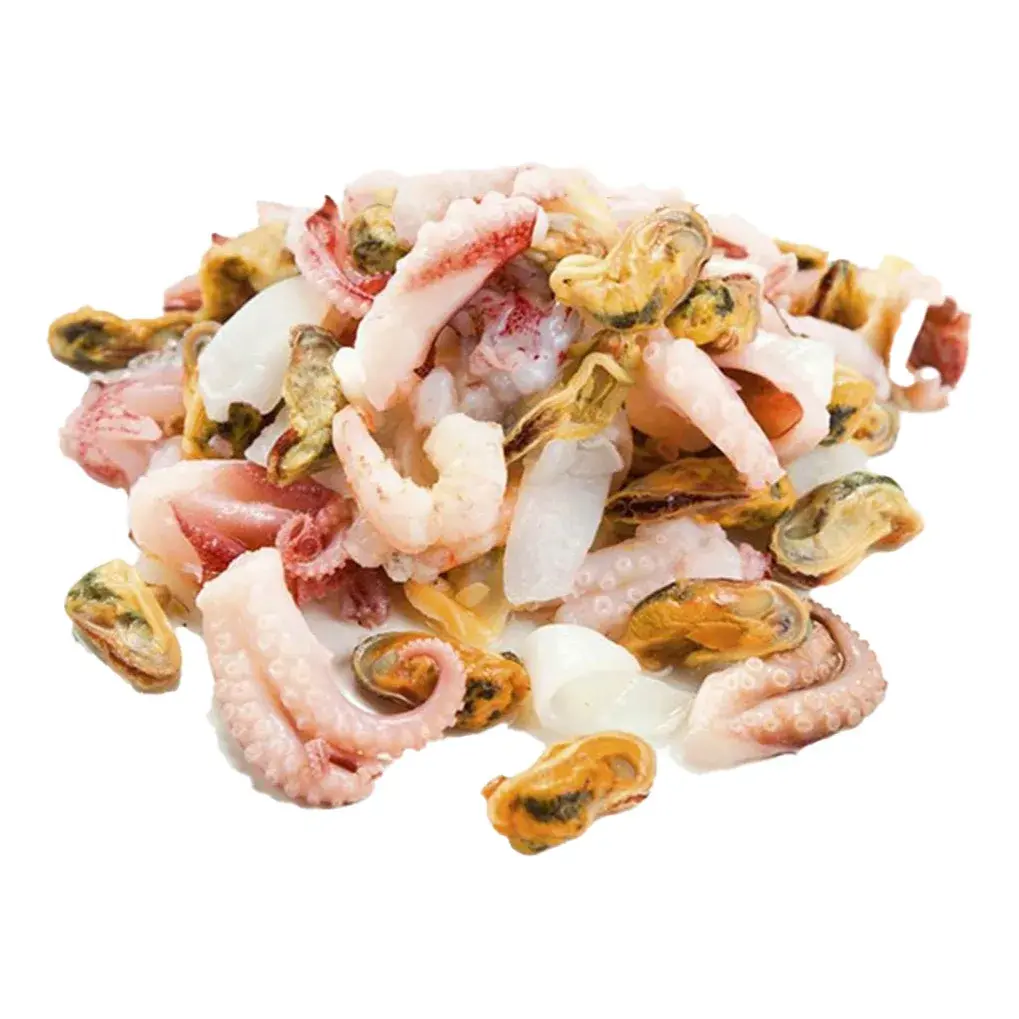 Морской коктейль IQF (Индивидуальной Быстрой Заморозки) — смесь отборных морепродуктов, сохранивших натуральную форму, сочность и питательные вещества. В состав входят кальмар, мидия, осьминог и другие дары моря. Технология IQF обеспечивает рассыпчатость продукта, позволяя легко дозировать порции без разморозки всего объема.